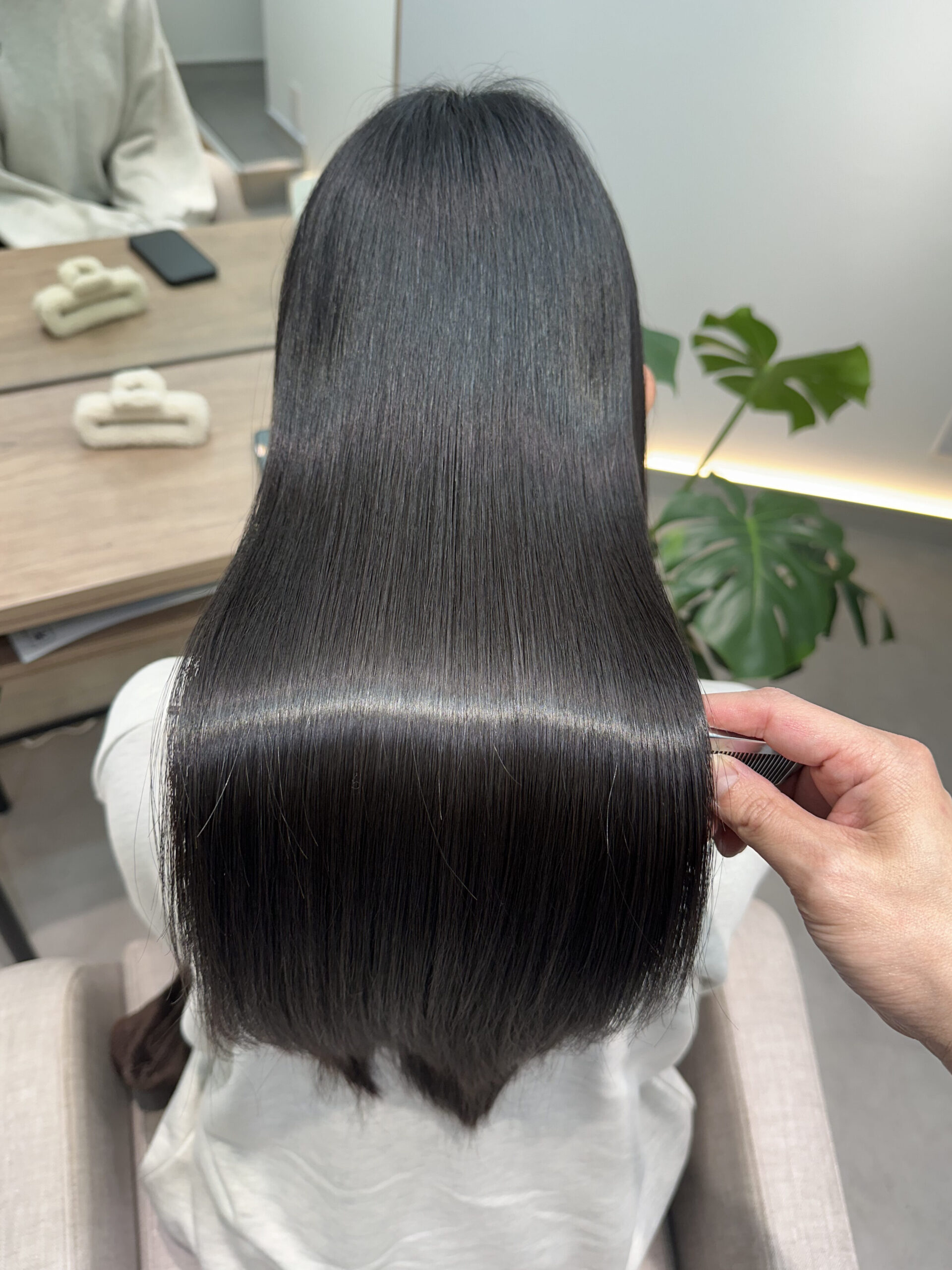 その髪質に合わせてオーダーメイドで調合した薬剤を使用し、髪への負担を最小限に抑えながらアイロンをかけるため、自然なツヤのある髪が実現します。